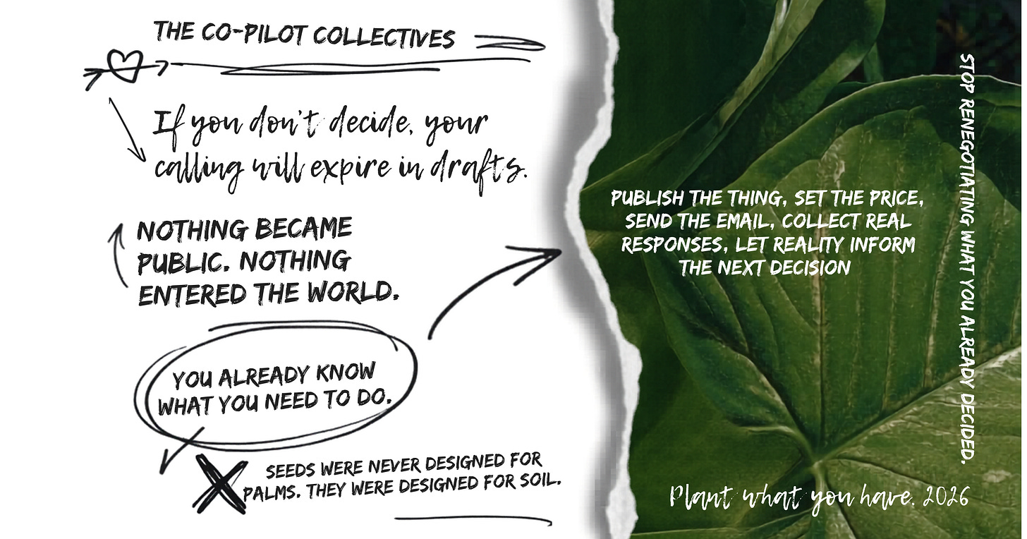 I realized I had been treating my decisions the same way I treated my drafts, editable, reversible, safe until further notice. Every time pressure rose, I reopened what I had already decided. I adjusted the price. I renamed the thing. I pushed the launch date. I told myself I was being strategic.